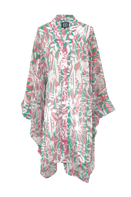 Floral Stripes with Gathers Outer - Pink
