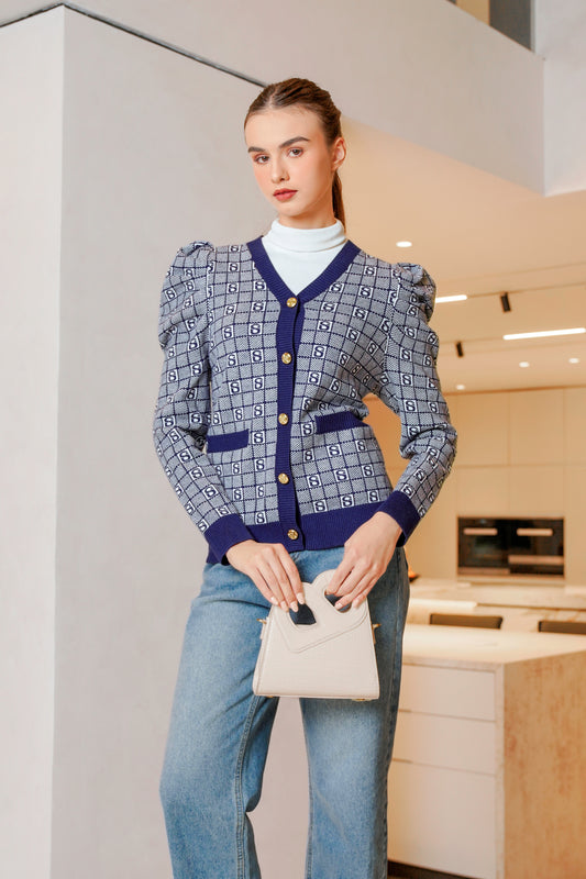 Plaid Cardigan - Navy