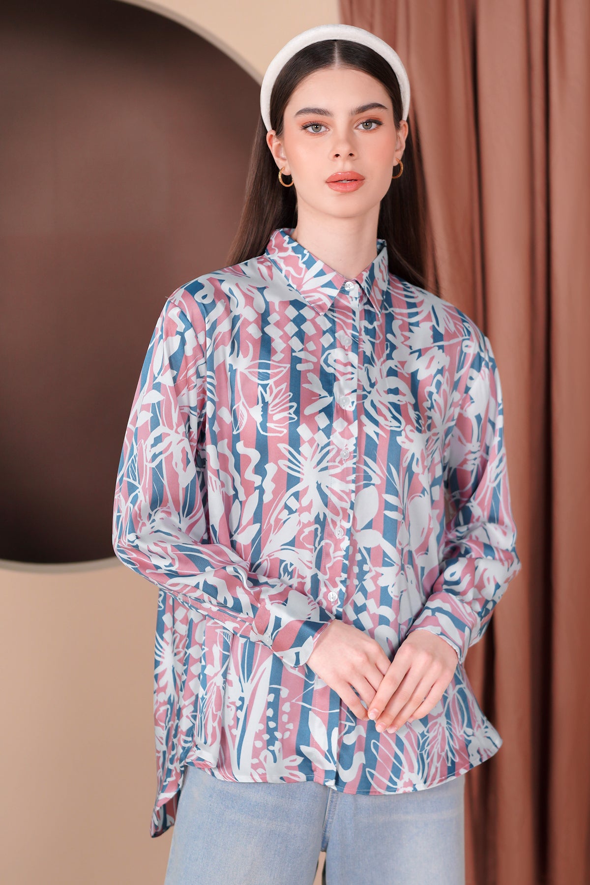 Floral Stripes Shirt - Blue