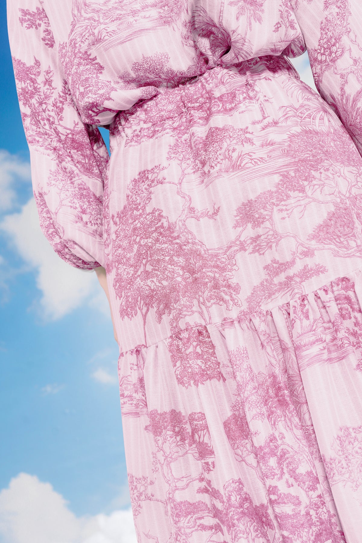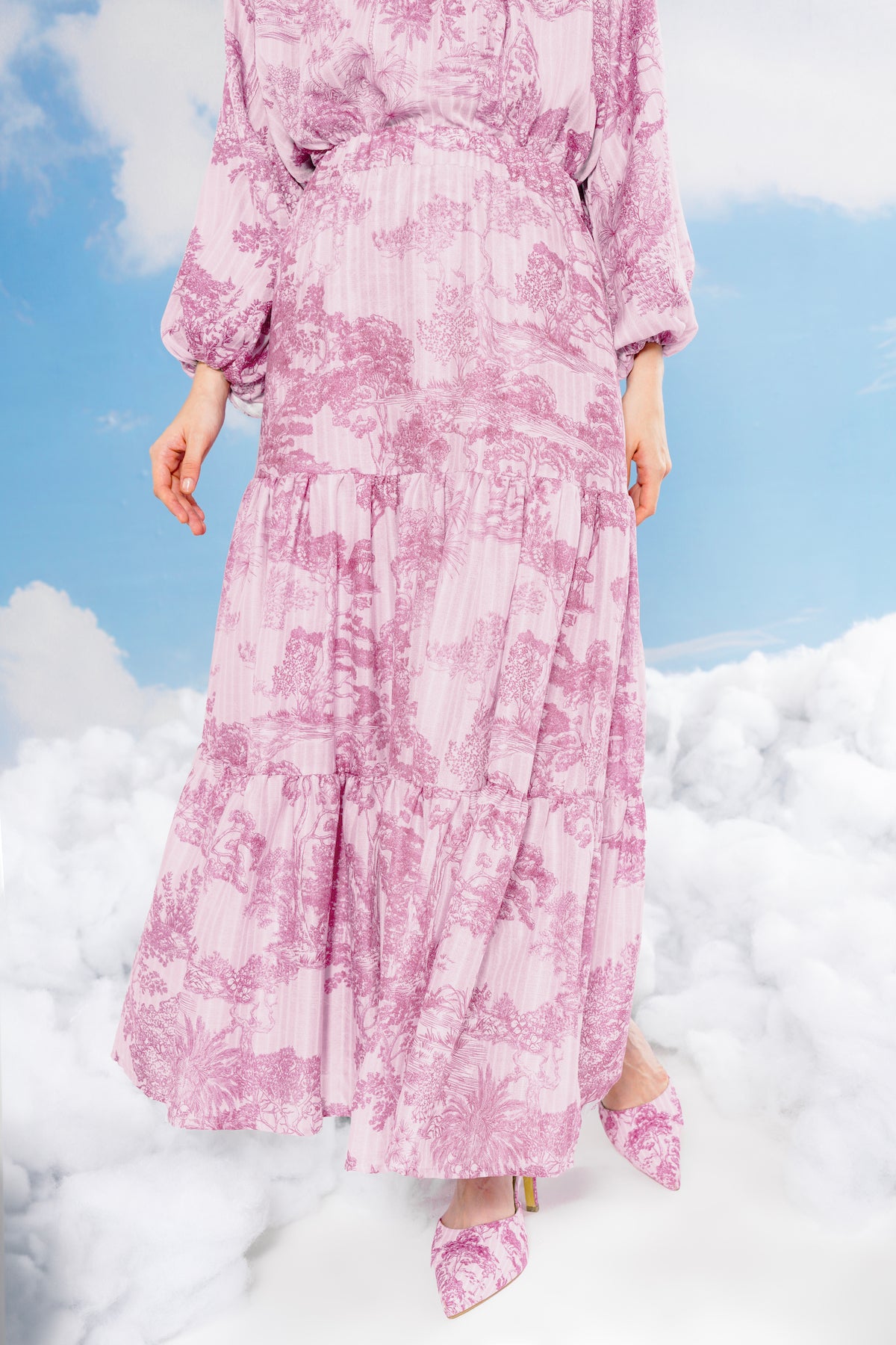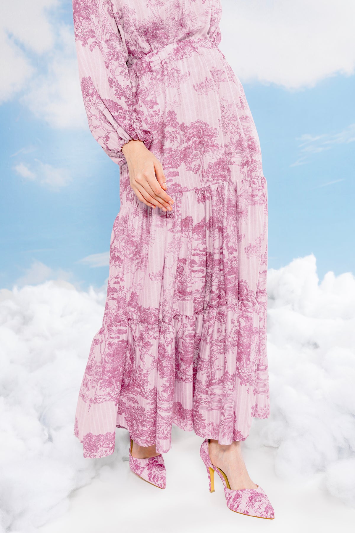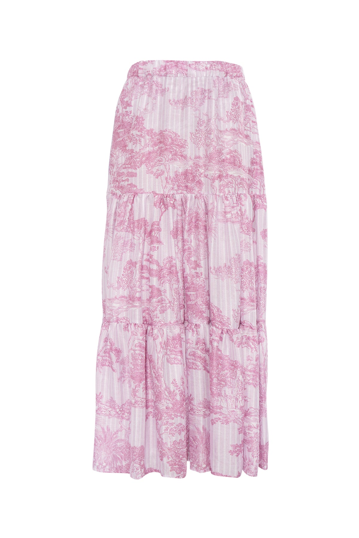 Forest Toile Tiered Skirt - Carmine Rose