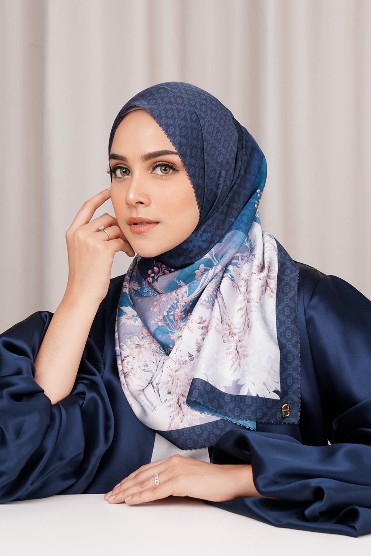 Holiday Satin Shawl - Deep Blue