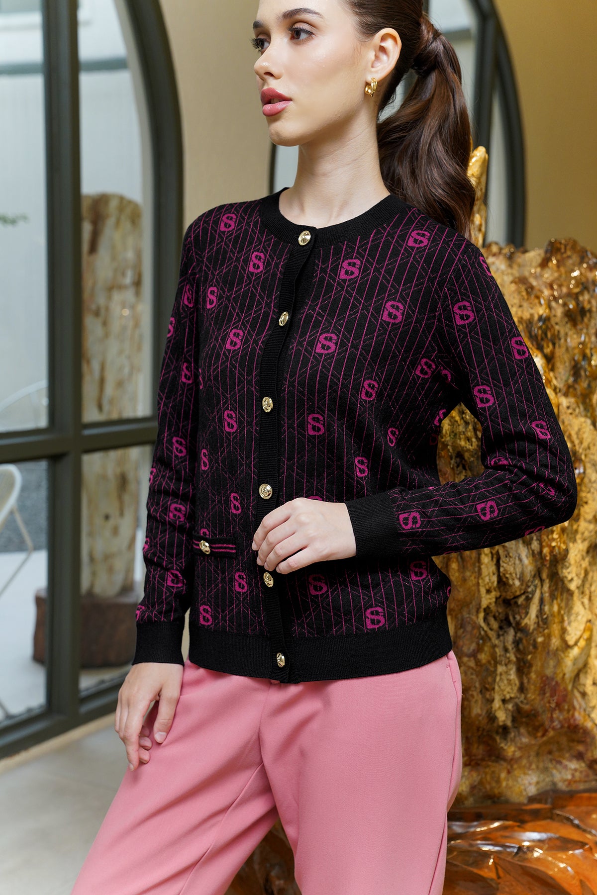 Lucy Cardigan - Black/Fuschia