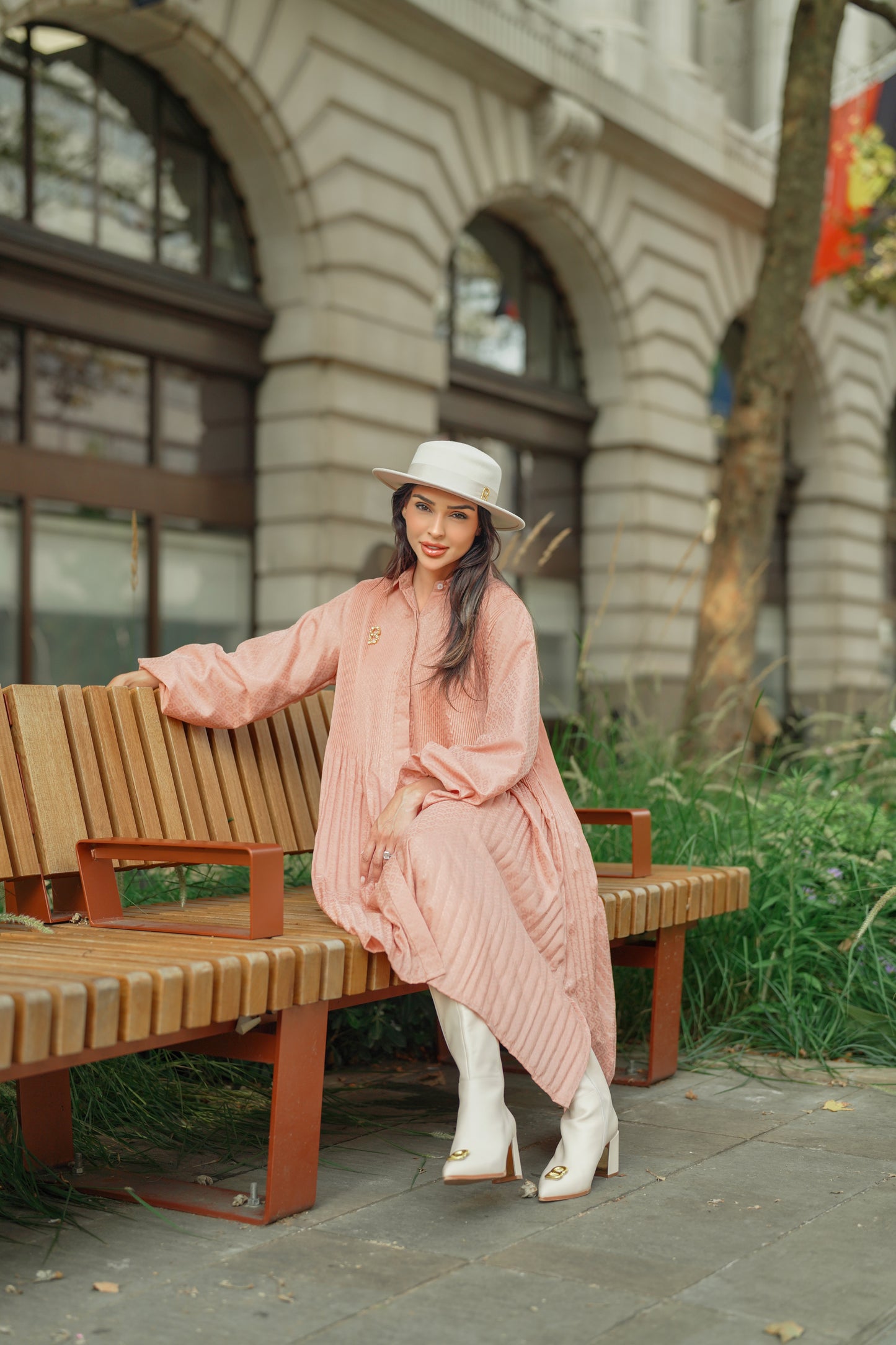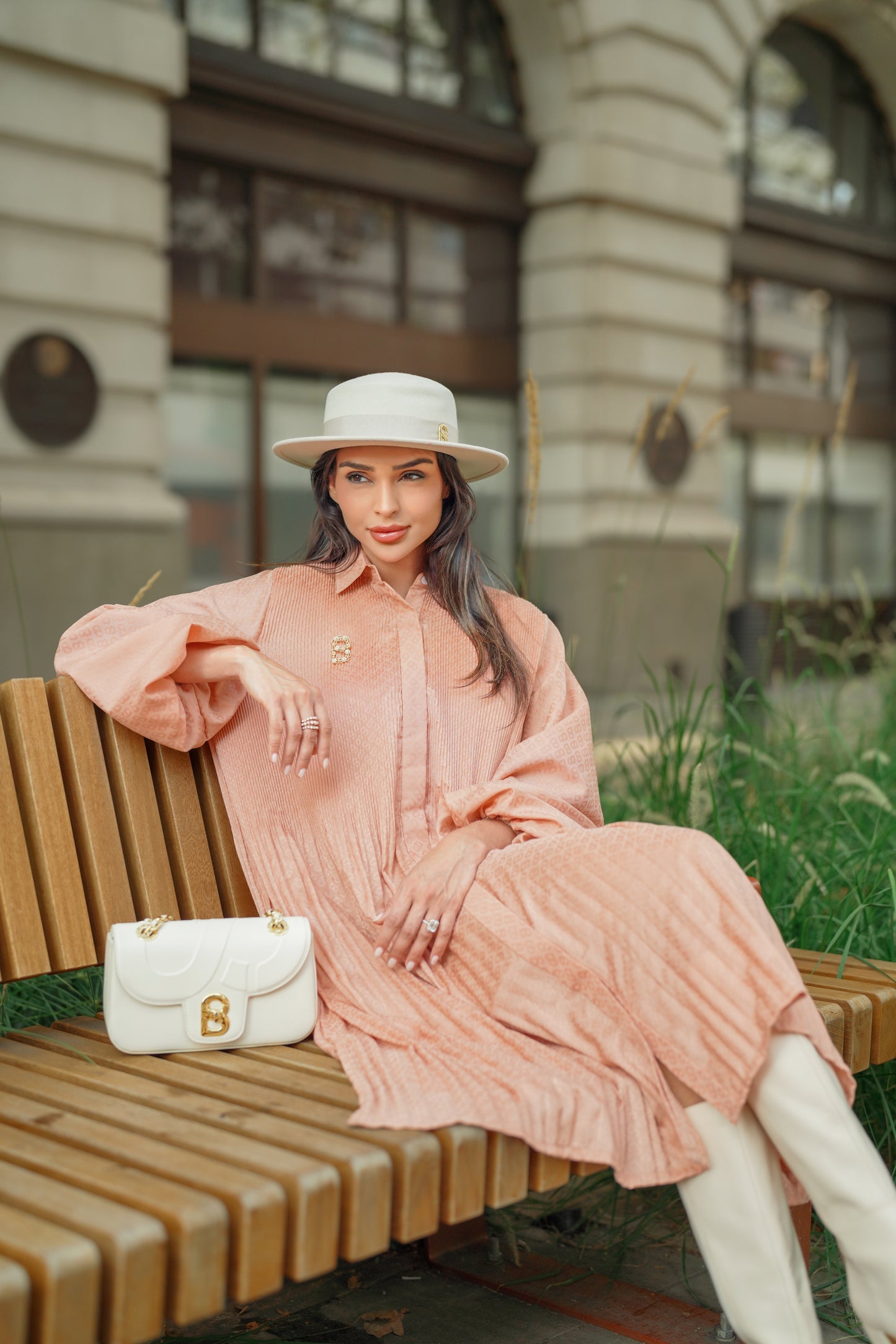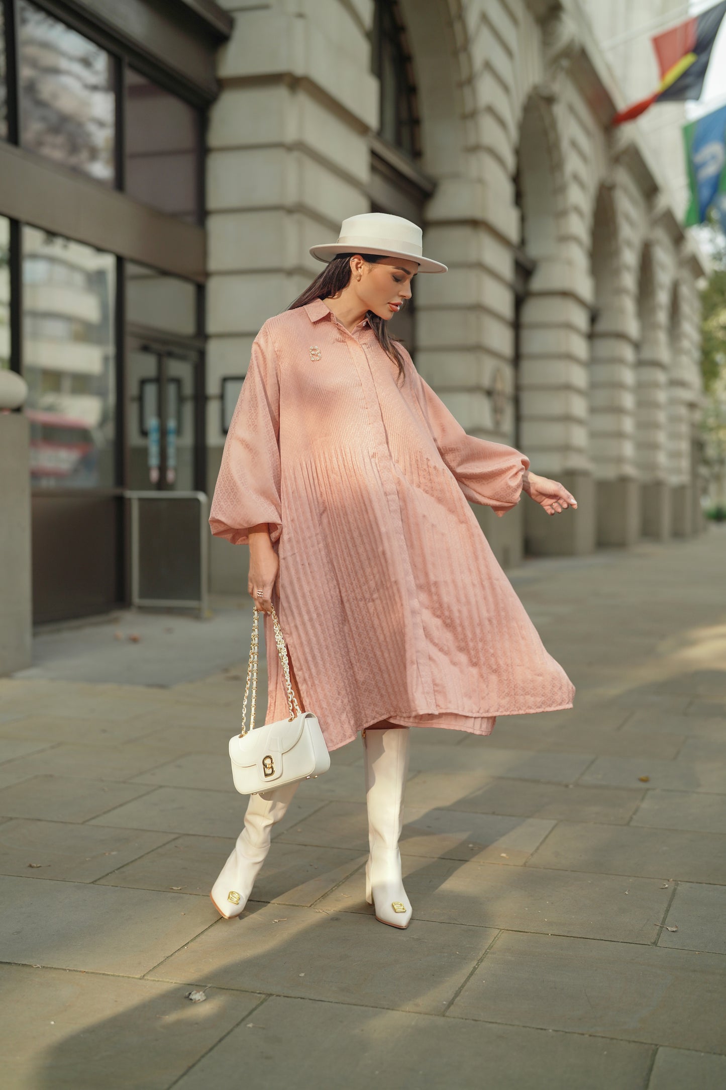 Monogram Embossed Pleated Shirt - Peach