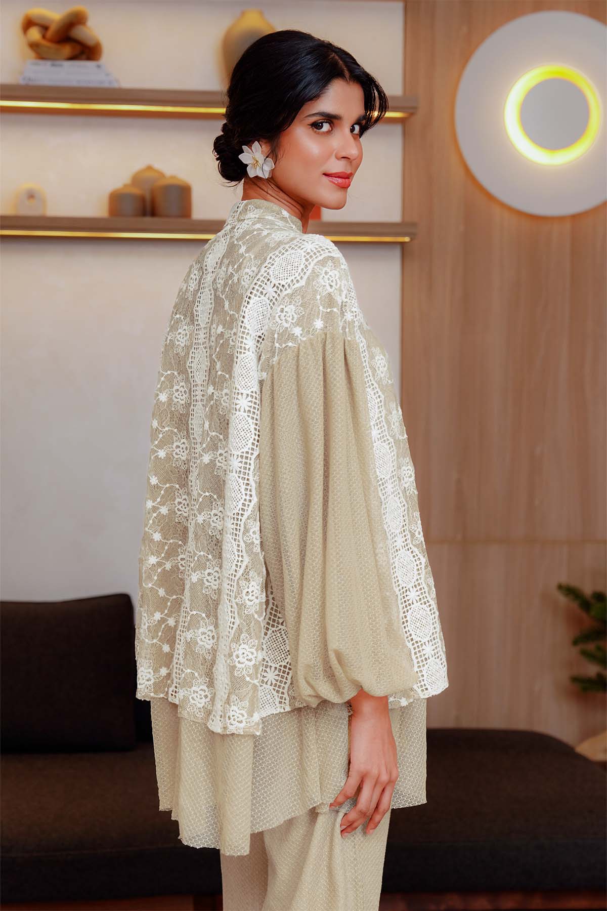 Peony Embroidery Shirt - Taupe