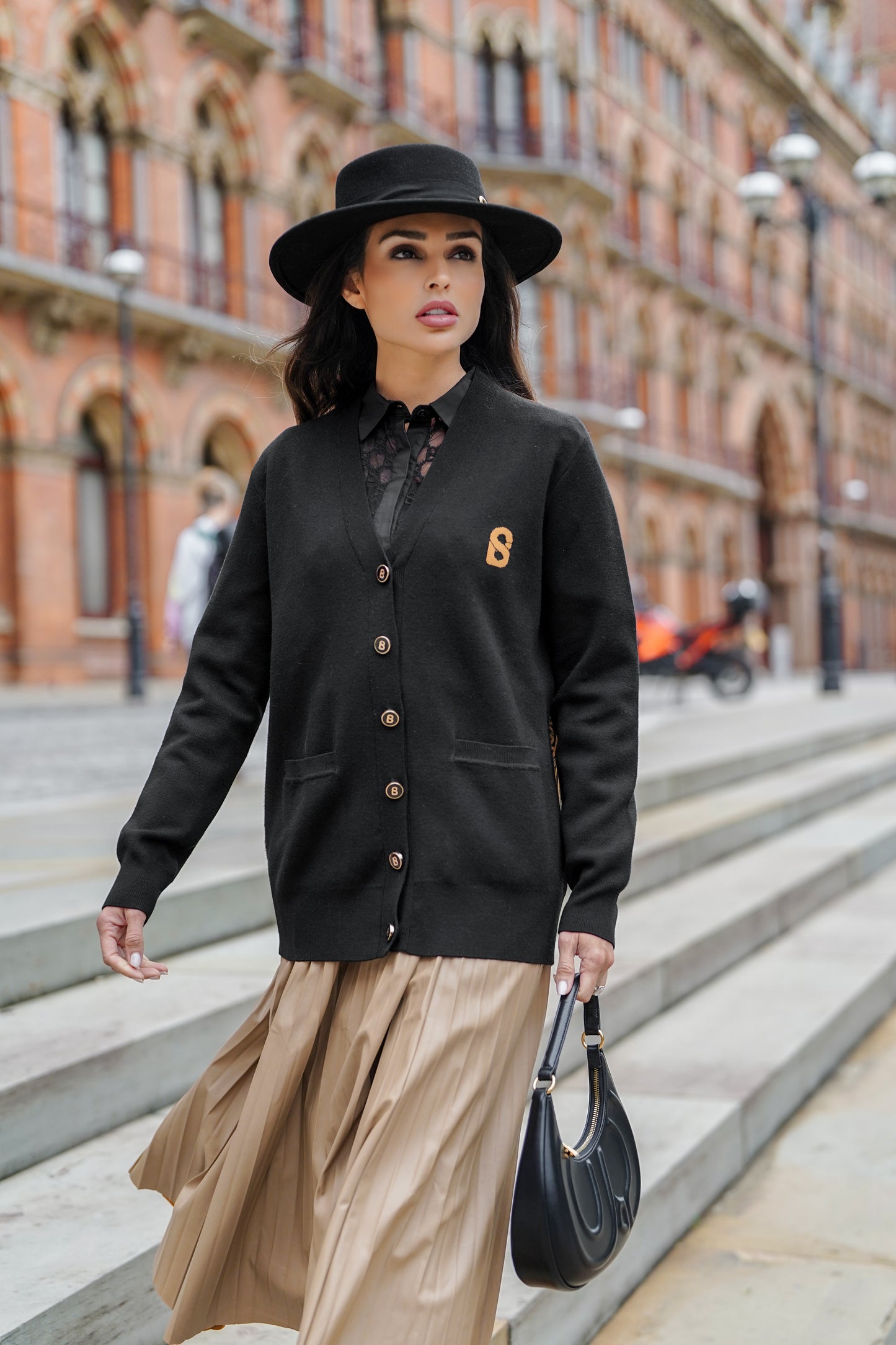 Plaid Wool Cardigan - Black